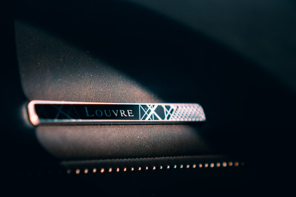 W środku nawiewy ustawimy we właściwym położeniu łapiąc za trójwymiarową piramidę Luwru wykonaną ze stali nierdzewnej. Na konsoli środkowej, tuż przed dźwignią zmiany biegów, znajdziemy przetłoczenie na skórze w takim samym kształcie. Na zewnątrz samochód zdobią natomiast laserowo grawerowane lusterka z podobnym motywem, emblematy Luwru zarówno z przodu jak i z tyłu, a na deser 20 calowe obręcze kół “Alexandria” nawiązujące do ogromnej kolekcji egipskich eksponatów znajdujących się w muzeum.